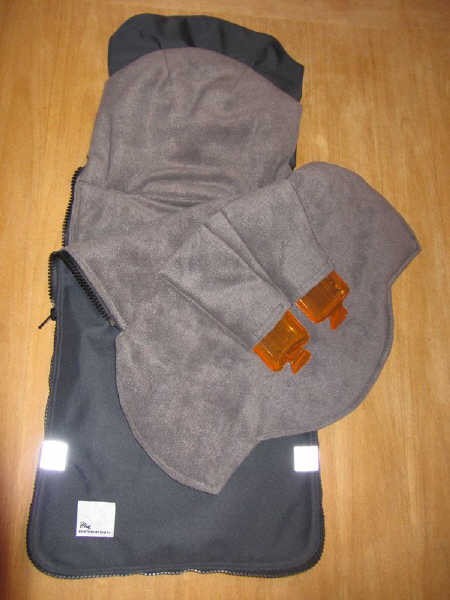 Kuschelig warm, winddicht, auf Wunsch mit Reißverschluß mittig oder seitlich, oder zum Aufklappen, ganz wie Sie sich den Wärmesack wünschen. Bei diesem Modell befinden sich die Füße ebenfalls im Wärmesack.